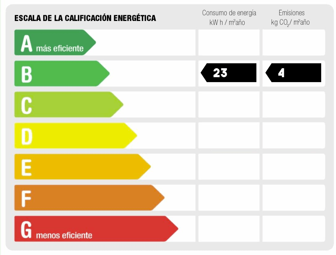- Consumo de energía (kwh/m2 año): 23.